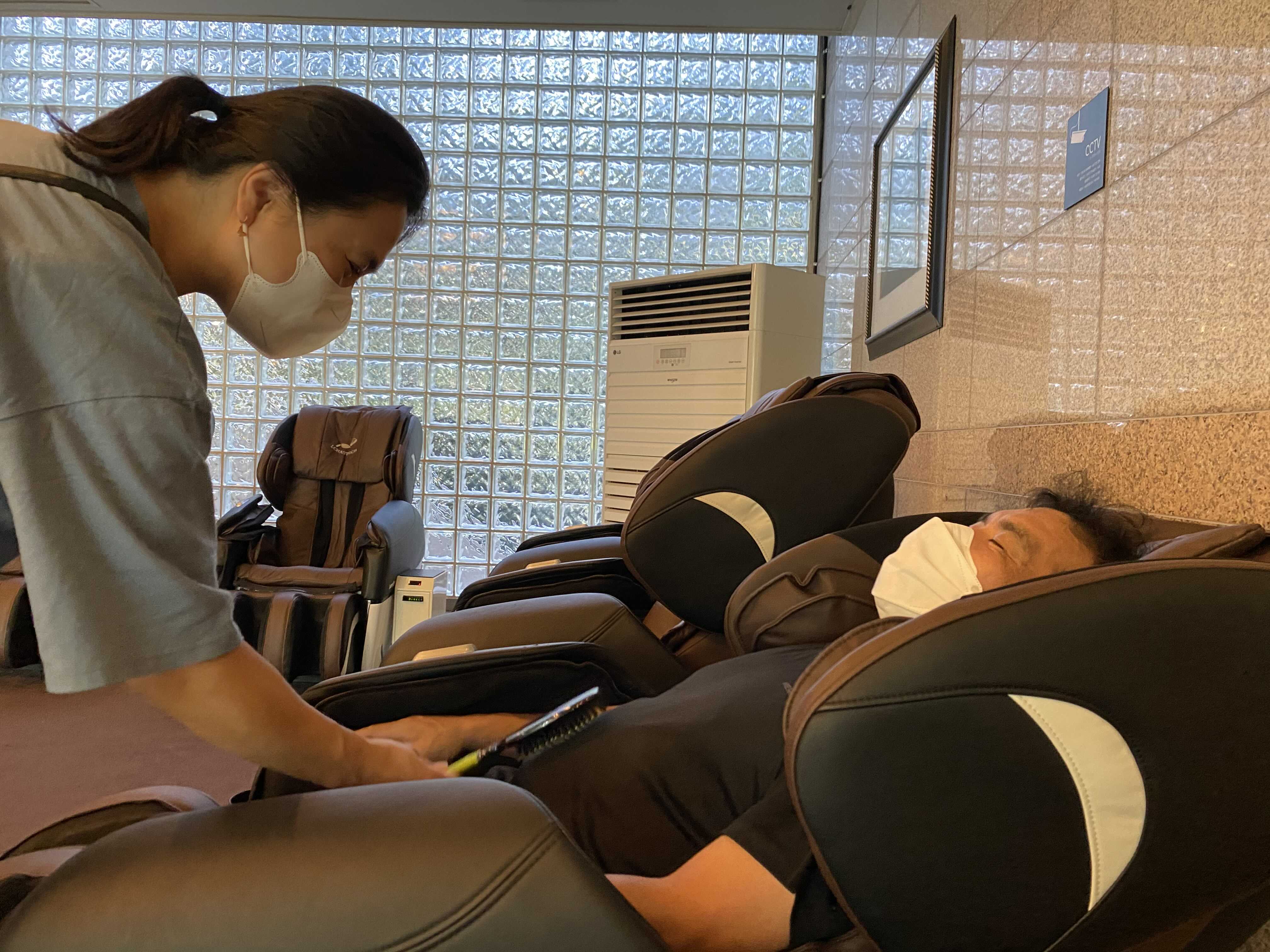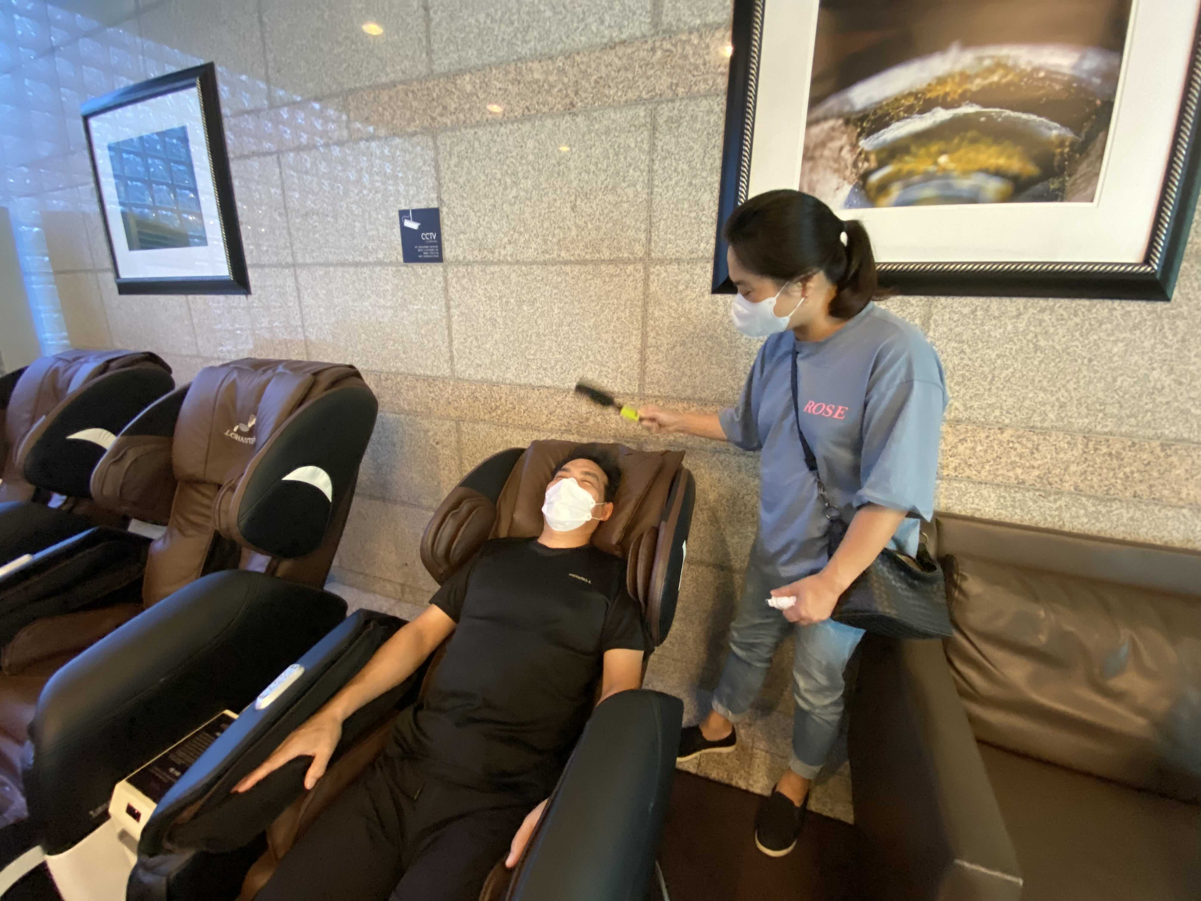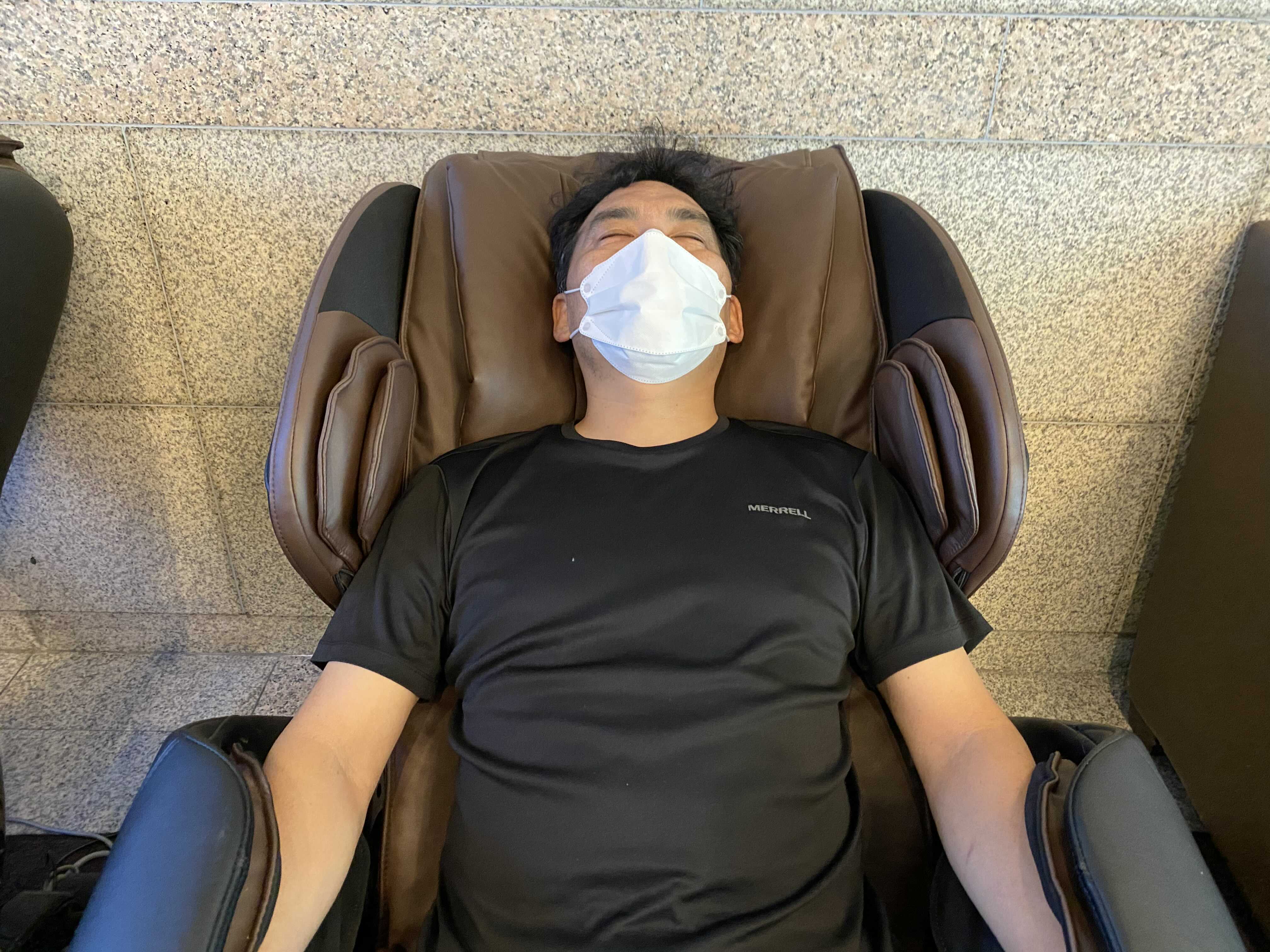 아빠은 2000원 넣고 안마의자 즐기는중