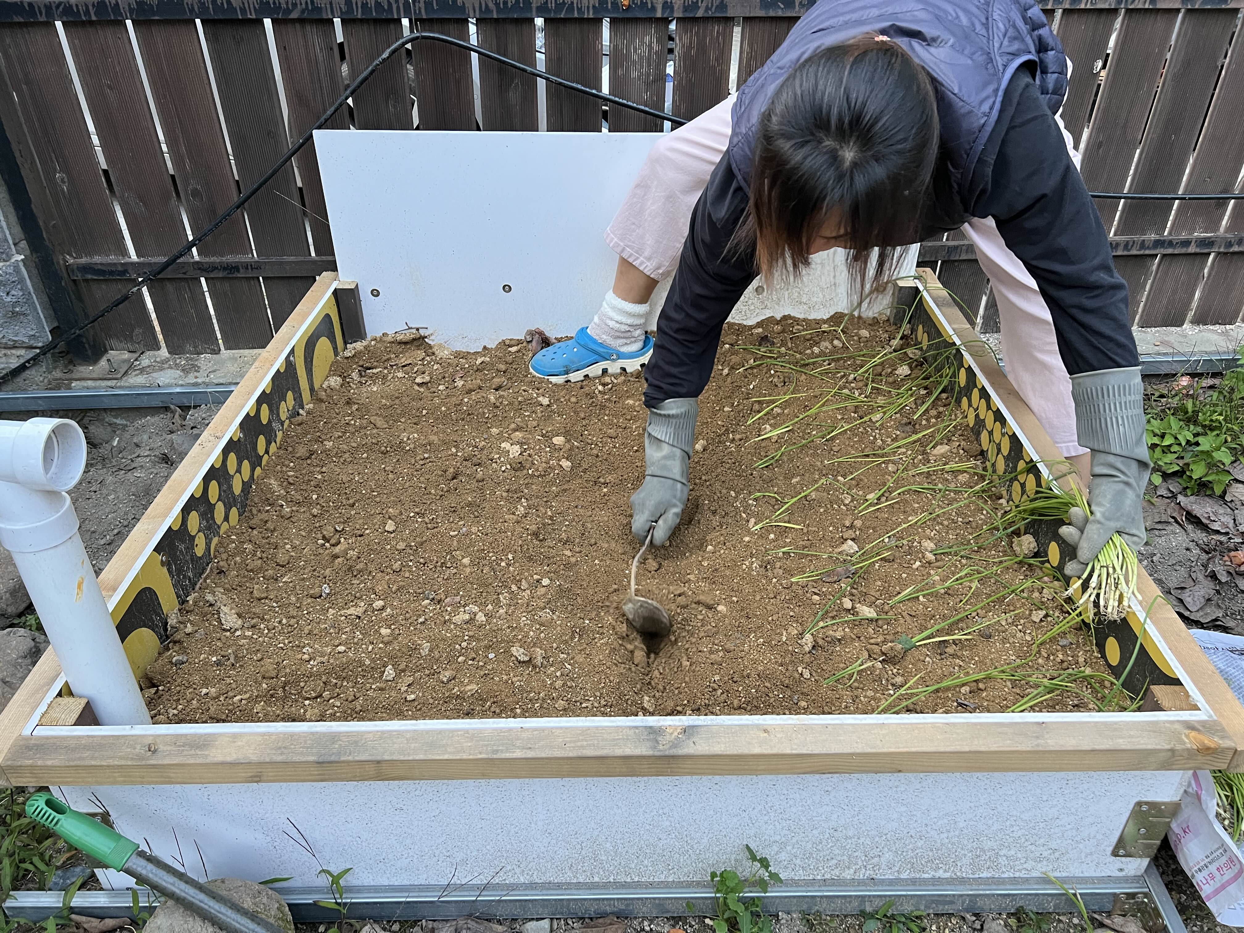 새로 만든 텃밭에 양파모종을 심었다