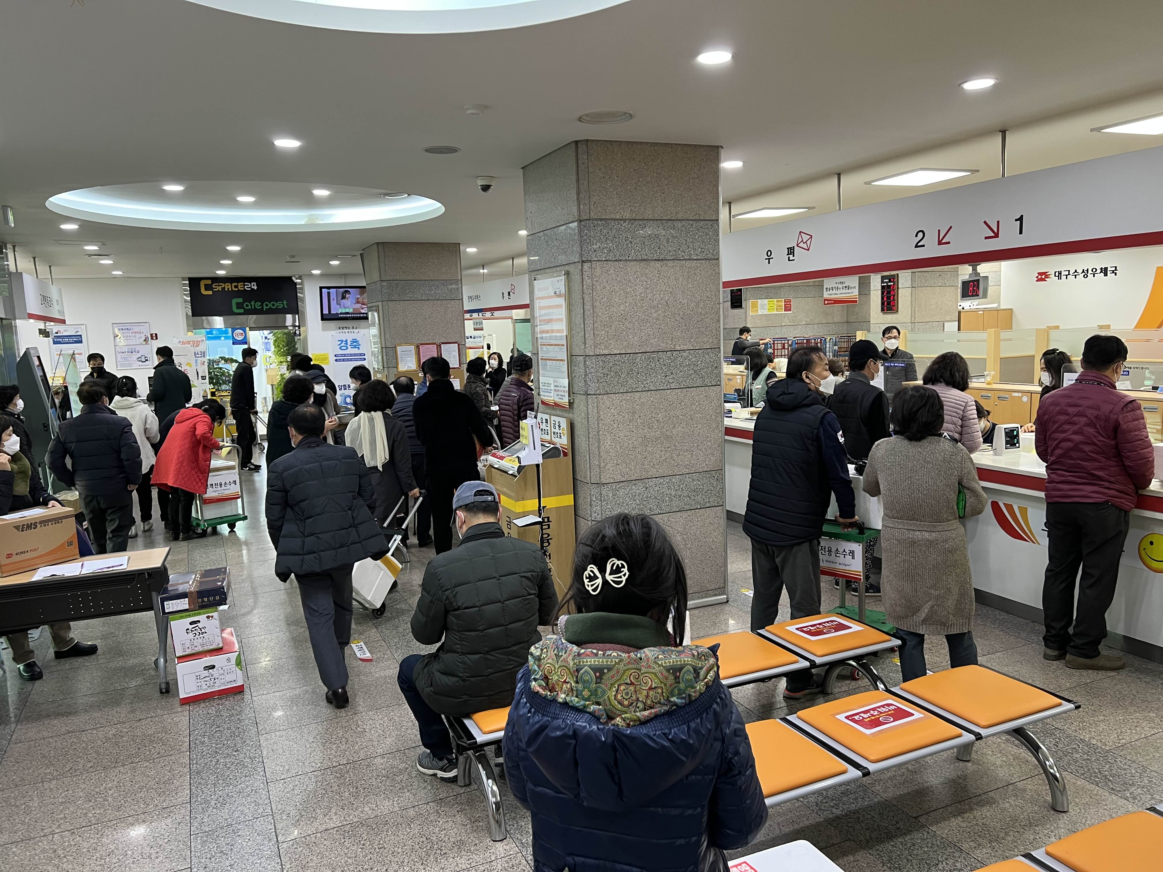 다연이에게 김장이랑 사골고은거를 보낼려고 아침일찍 우체국에 갔다. 당일배송은 만원이 더 붙지만 울 딸에게 그정도는 아깝지 않다. 근데 그런 사람이 나만 있는건 아닌듯ㅎ 많은 사람들이 김장 보낼려고 엄청나게 와있다