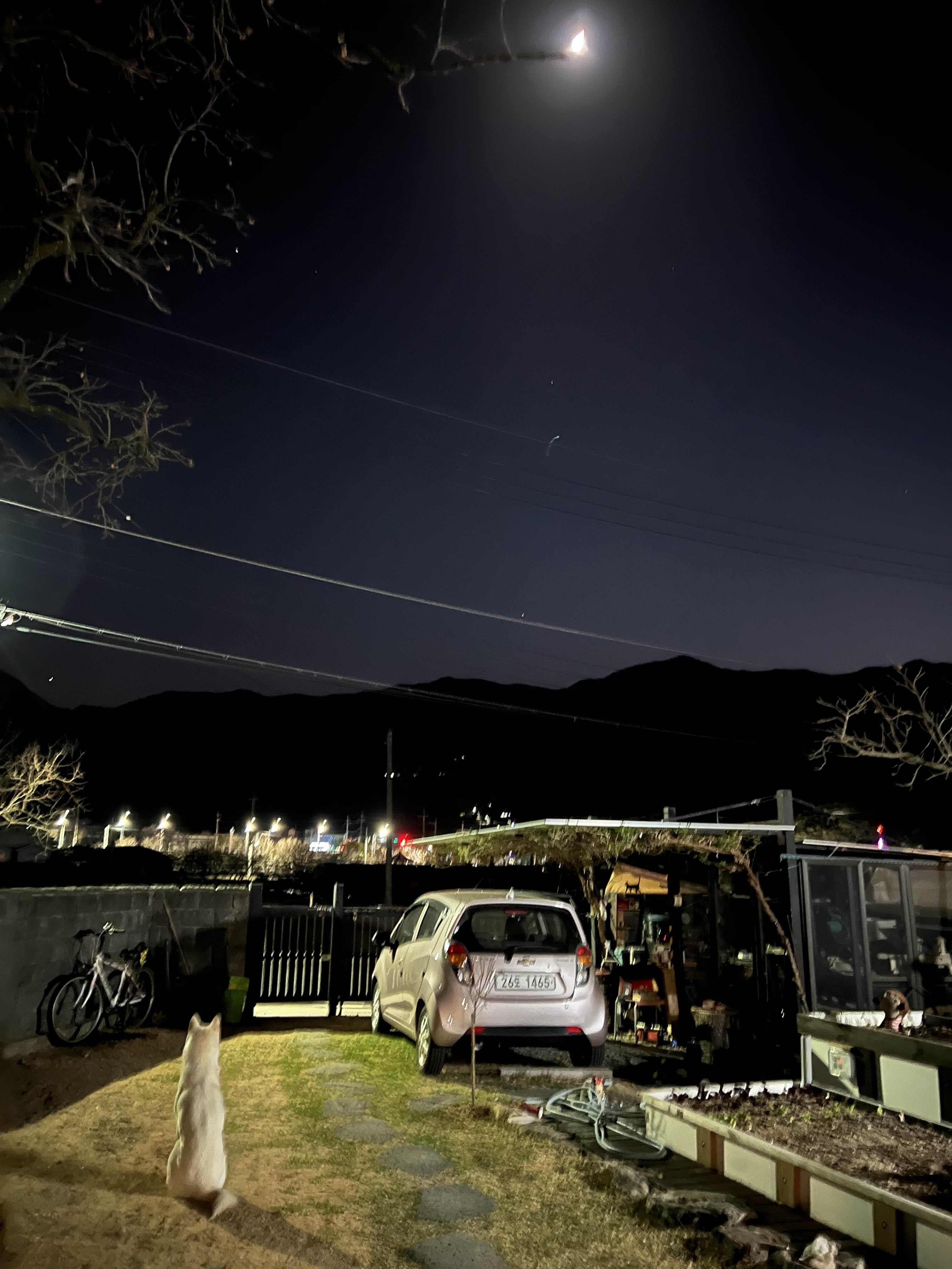 달이 이쁘게 뜬 마당에서 다소곳이 이쁘게 앉아 도대체 무슨생각을 할까?