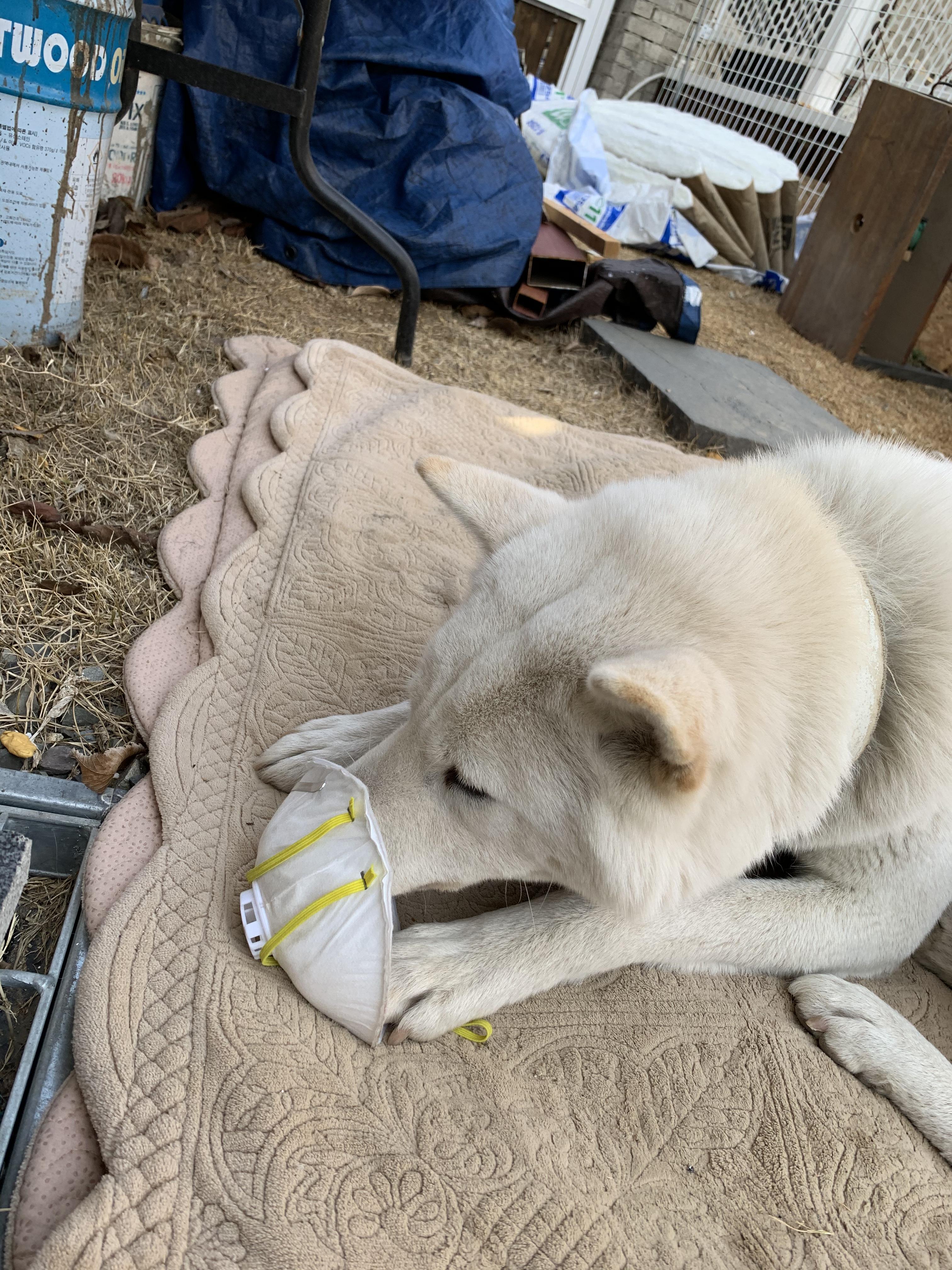 코로나가 대구를 덮치고 우리는 모두 집에서 칩거중이다.마루도 두려움에 마스크착용을 권고했다.