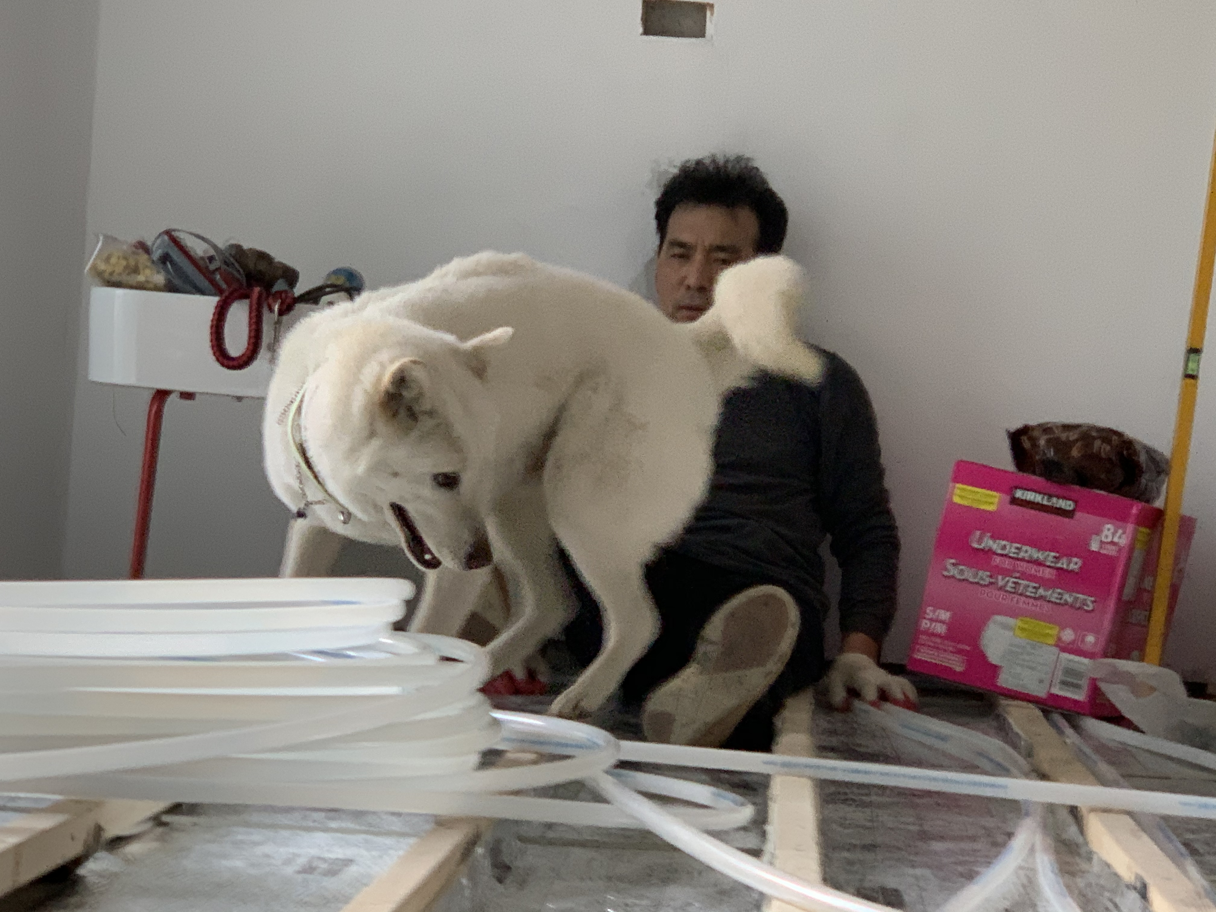 마루가 엄청 방해한다.그러게 내가 깔지 말랬지!