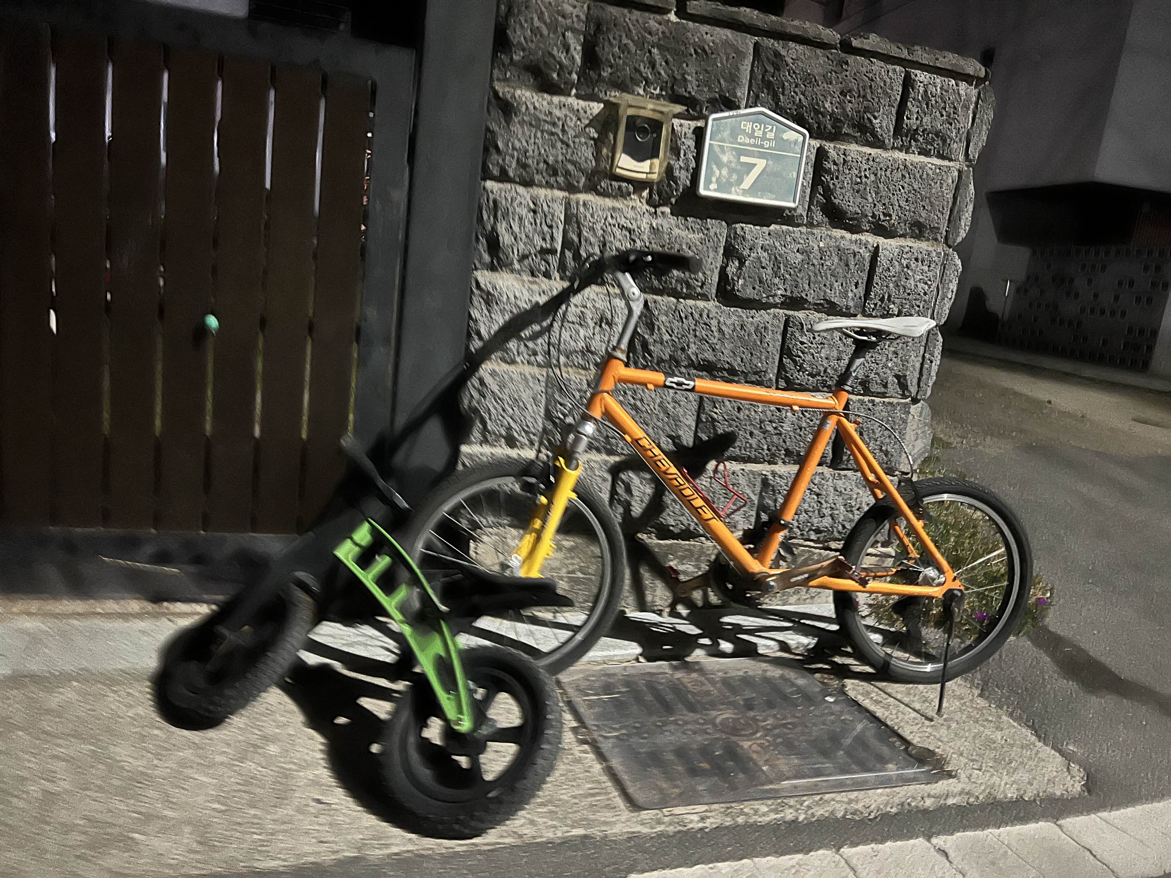 퇴근하고 집에 오니 대문앞에 정재한씨 자전거 앞에 살포시 이준서 자전거가 포개져 있다.